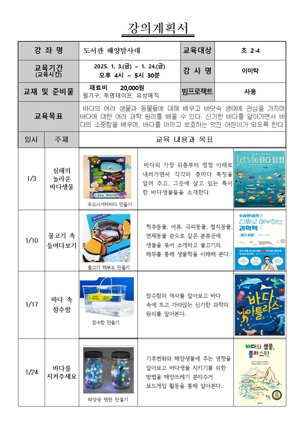 | 첨부파일 | 도서관 해양탐사대 강의계획서(북파크).jpg |