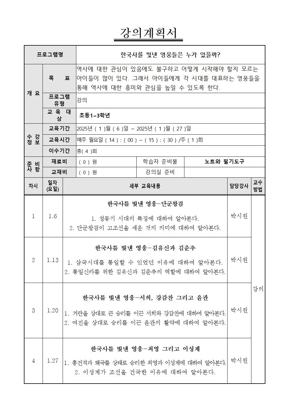 | 첨부파일 | 한국사를 빛낸 영웅들은 누가 있을까 강의계획서(부곡1).jpg |