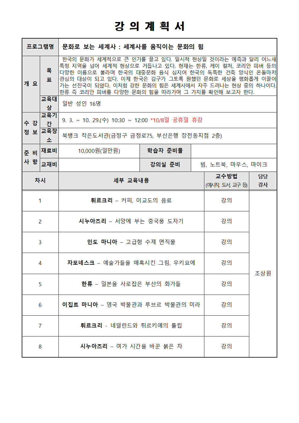 첨부파일 | 문화로 보는 세계사 강의계획서001.png |