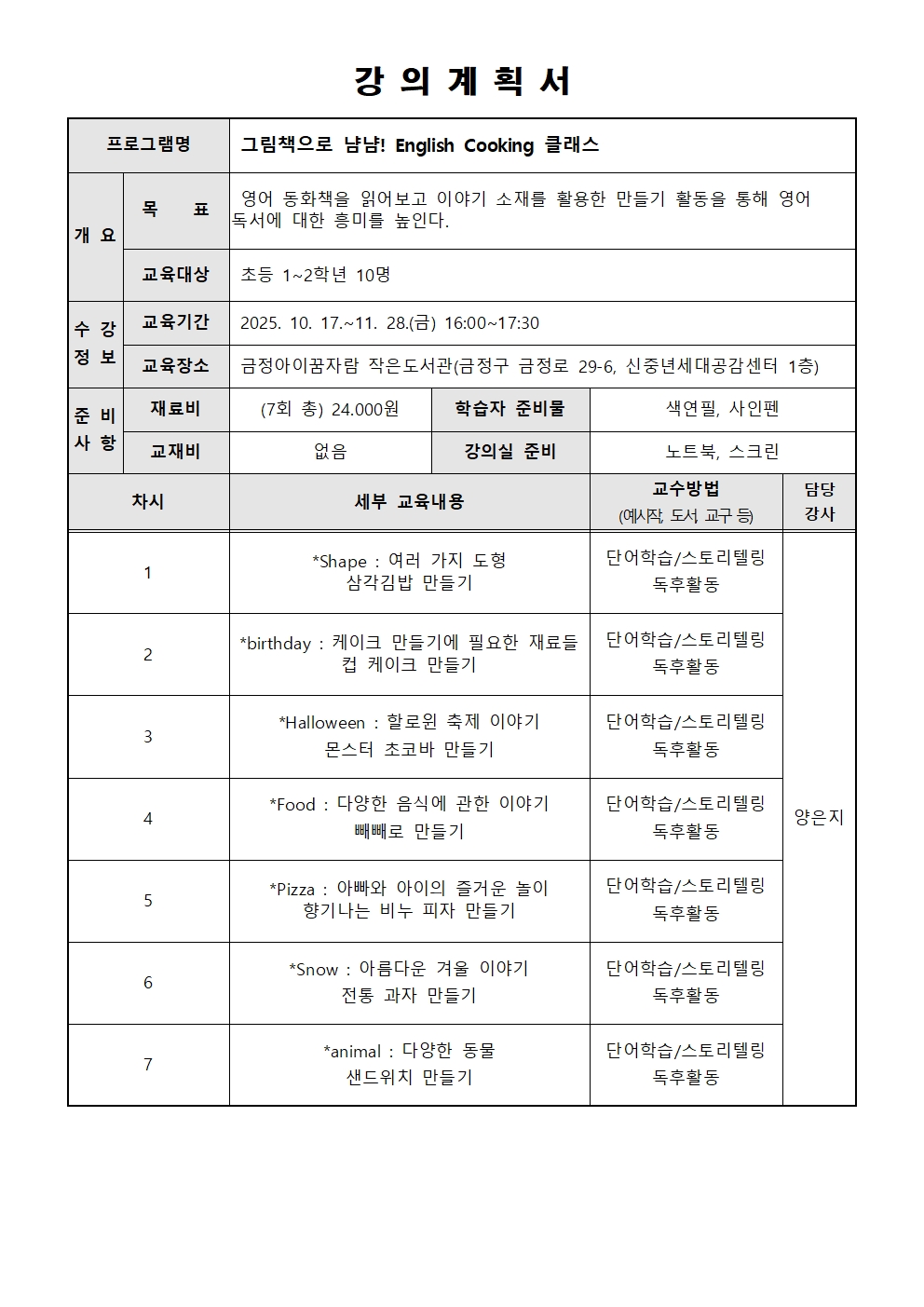 첨부파일 | 강의계획서(영어쿠킹7회)001.jpg |