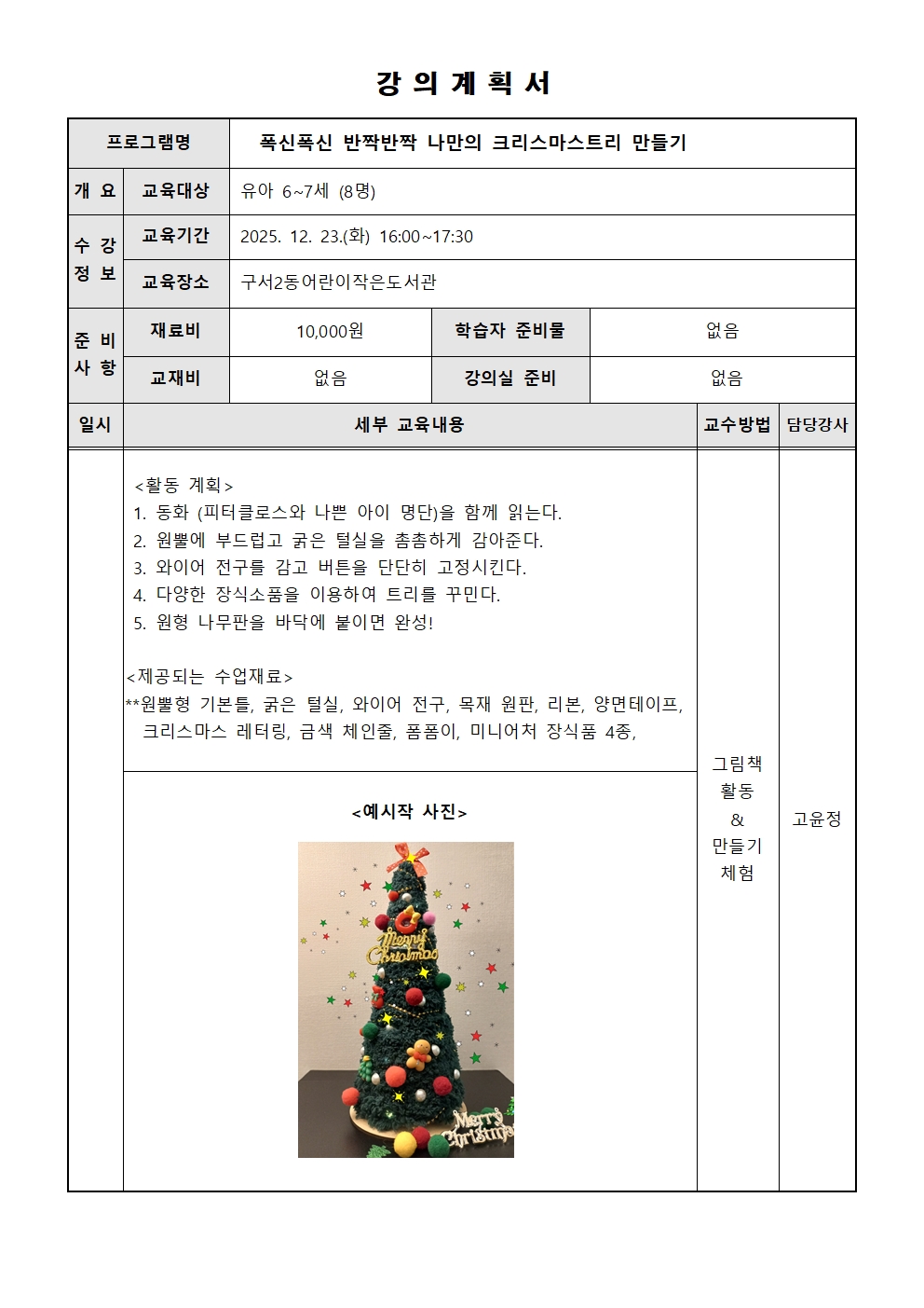 | [구서2동어린이] 폭신폭신 반짝반짝 나만의 크리스마스 트리 만들기 (미리 메리 크리스마스) | |