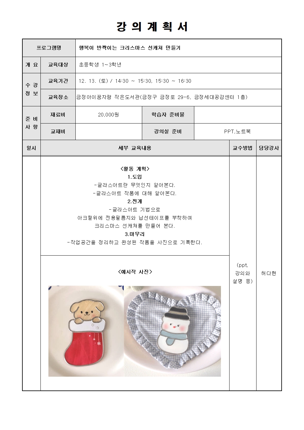 | [금정아이꿈자람] 행복이 반짝이는 크리스마스 선캐쳐 만들기 1차 (미리 메리 크리스마스) | |