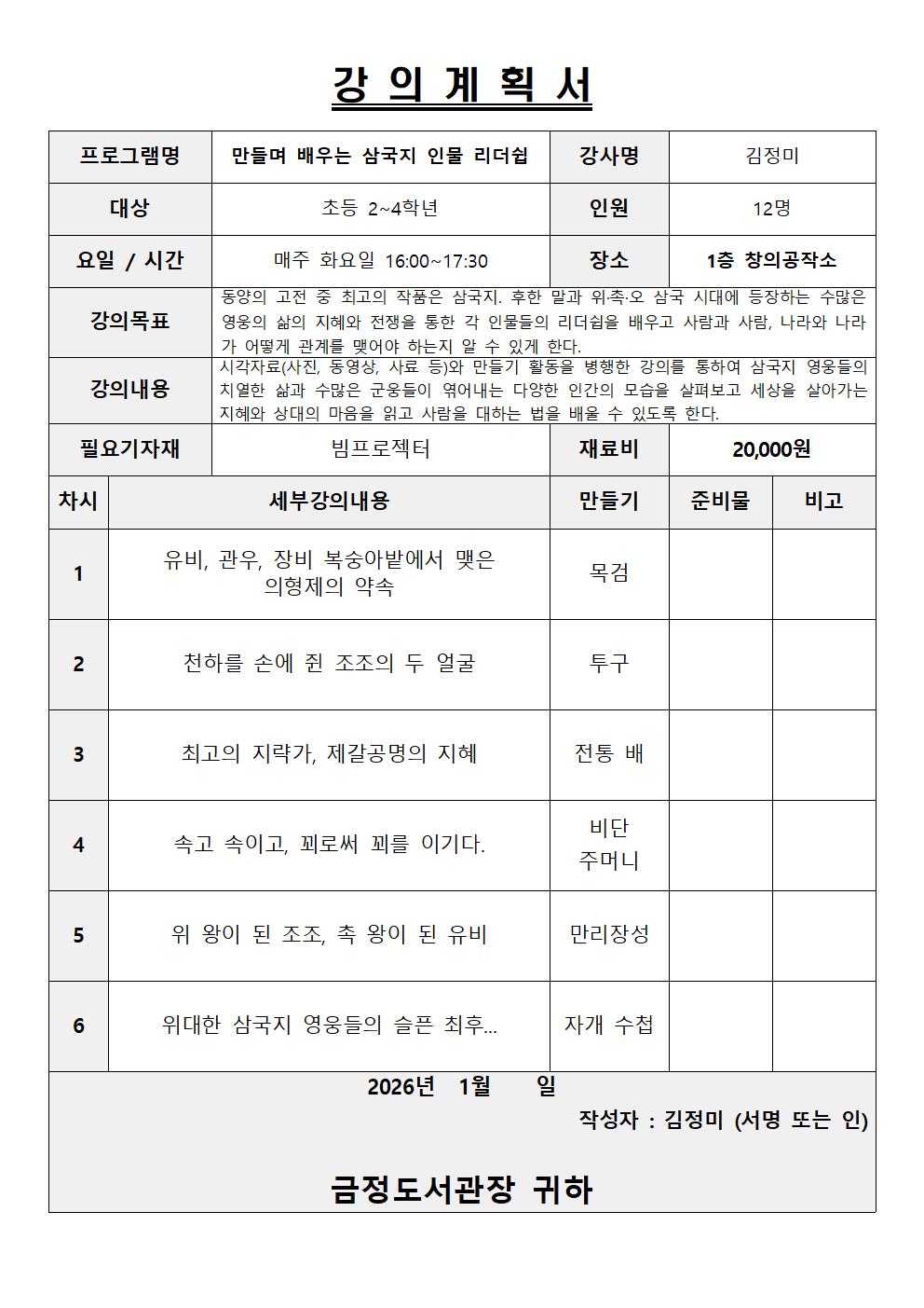 | [상반기 어린이 독서문화강좌]만들며 배우는 삼국지 인물 리더쉽 | |