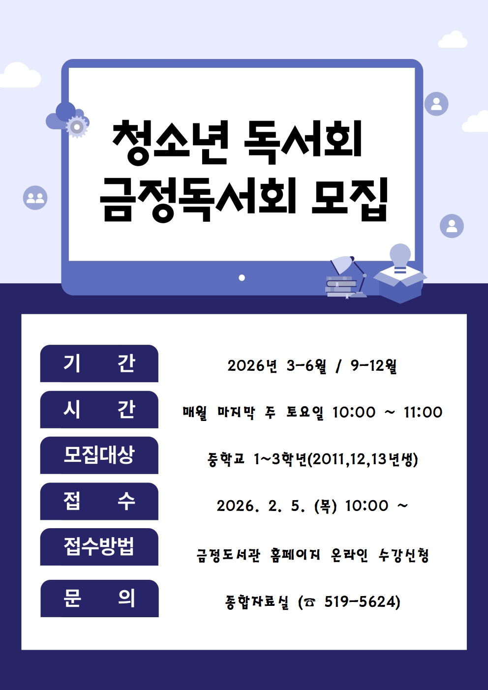 | [청소년 독서회] 2026년 금정독서회 회원 모집 | |