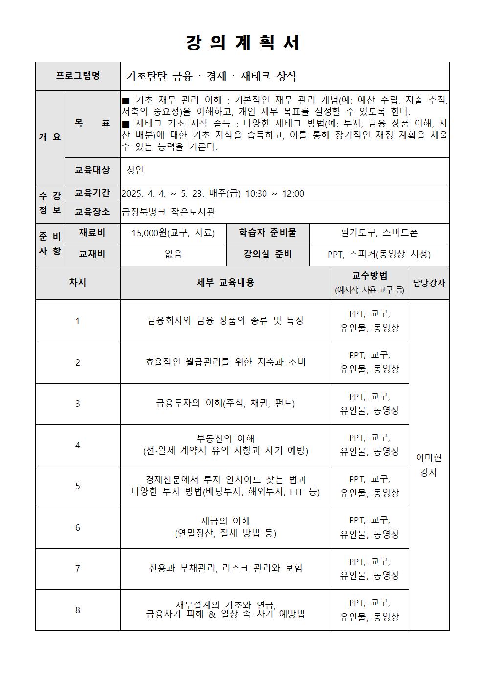 | 첨부파일 | 기초탄탄 금용경제 상식 강의계획서001.jpg |